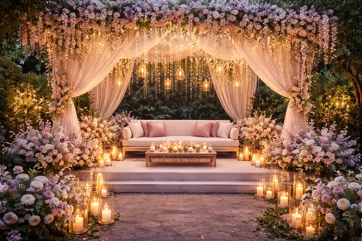 Imagine walking into a venue where the air is filled with the scent of a thousand blooms and the ceiling is a canopy of twinkling stars..