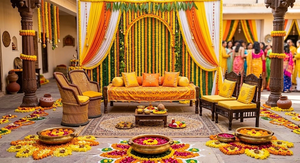 Haldi Seating Decor Ideas for Comfortable and Beautiful Wedding Functions